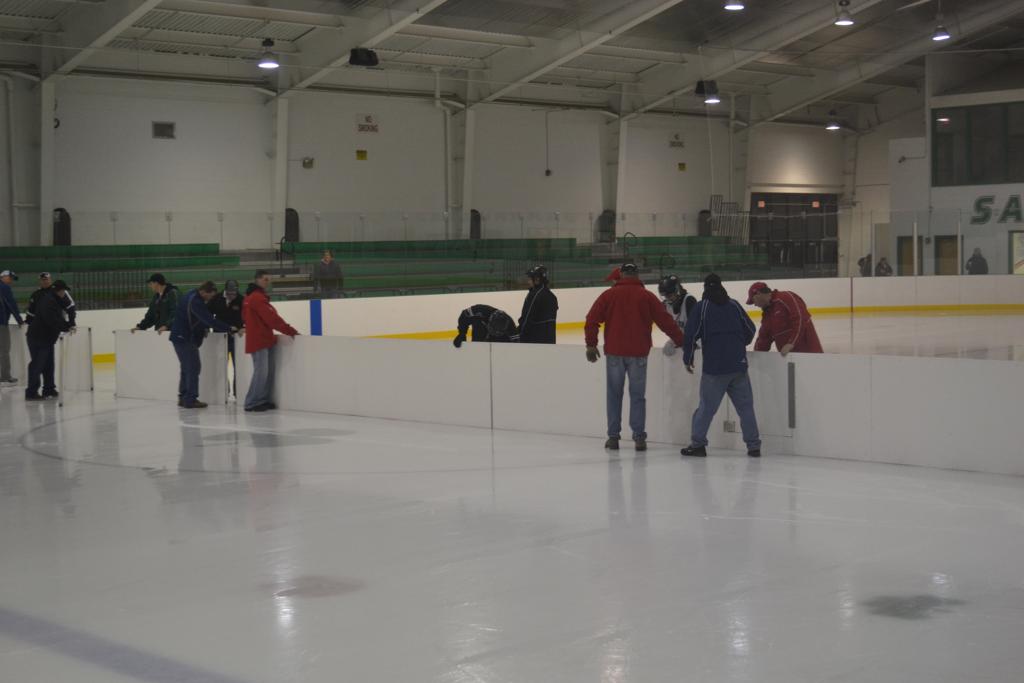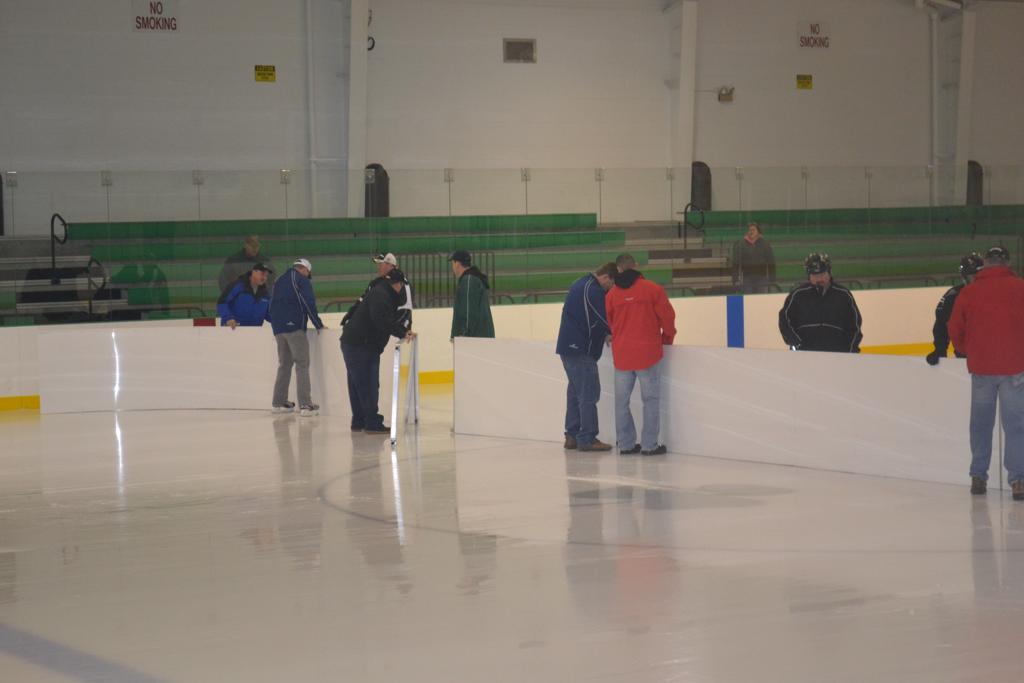 The cross ice boards being setup for the first time